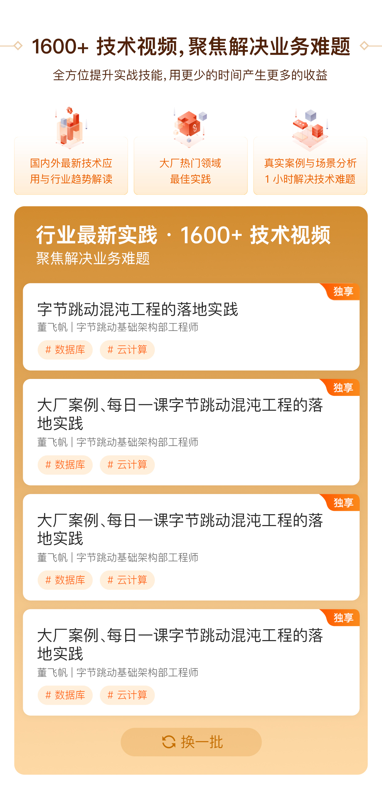 极客时间覆盖千余名专家讲师,均来自一线大厂、独角兽企业或知名开源社区、技术社区,具有多年一线从业经验。