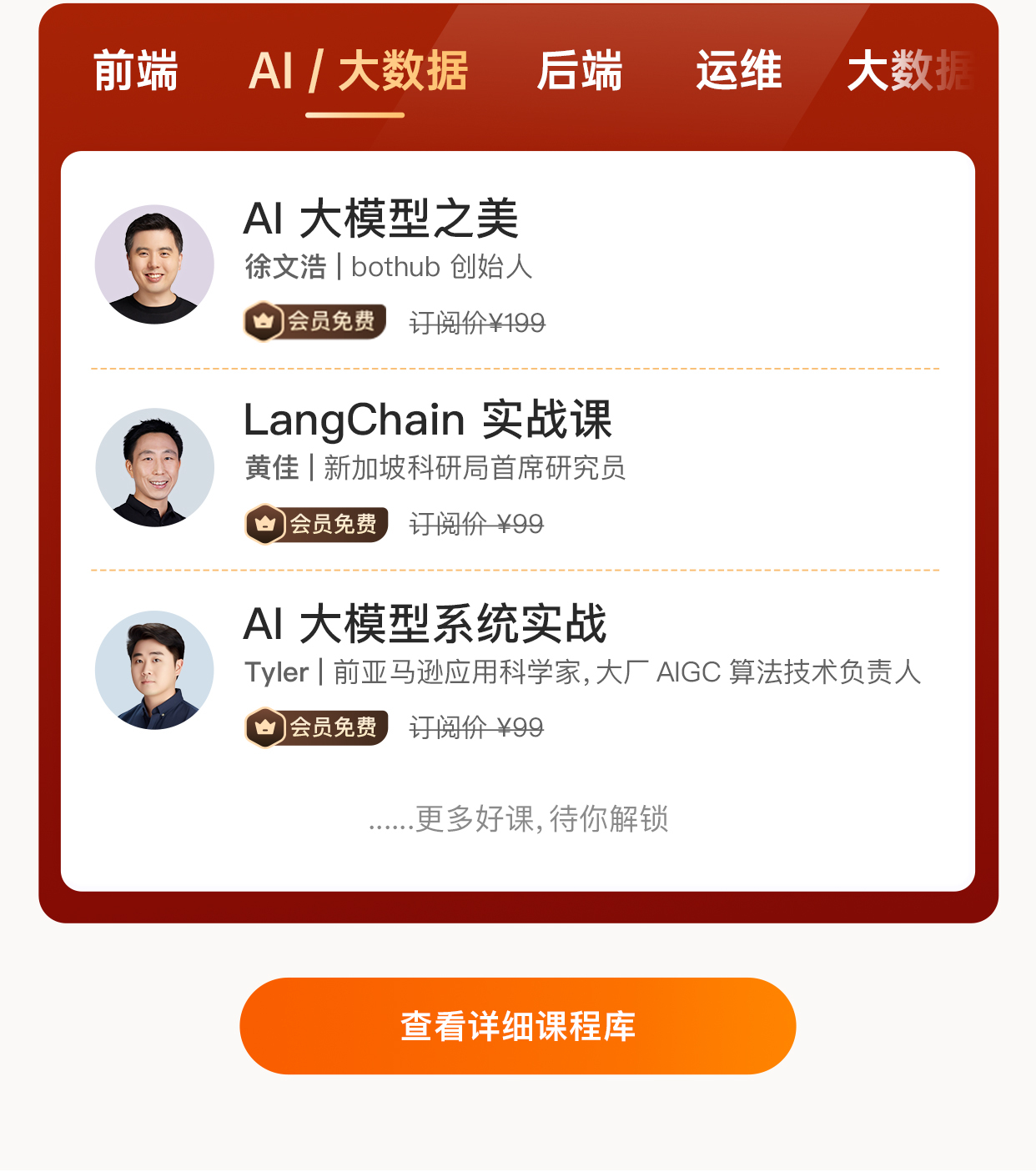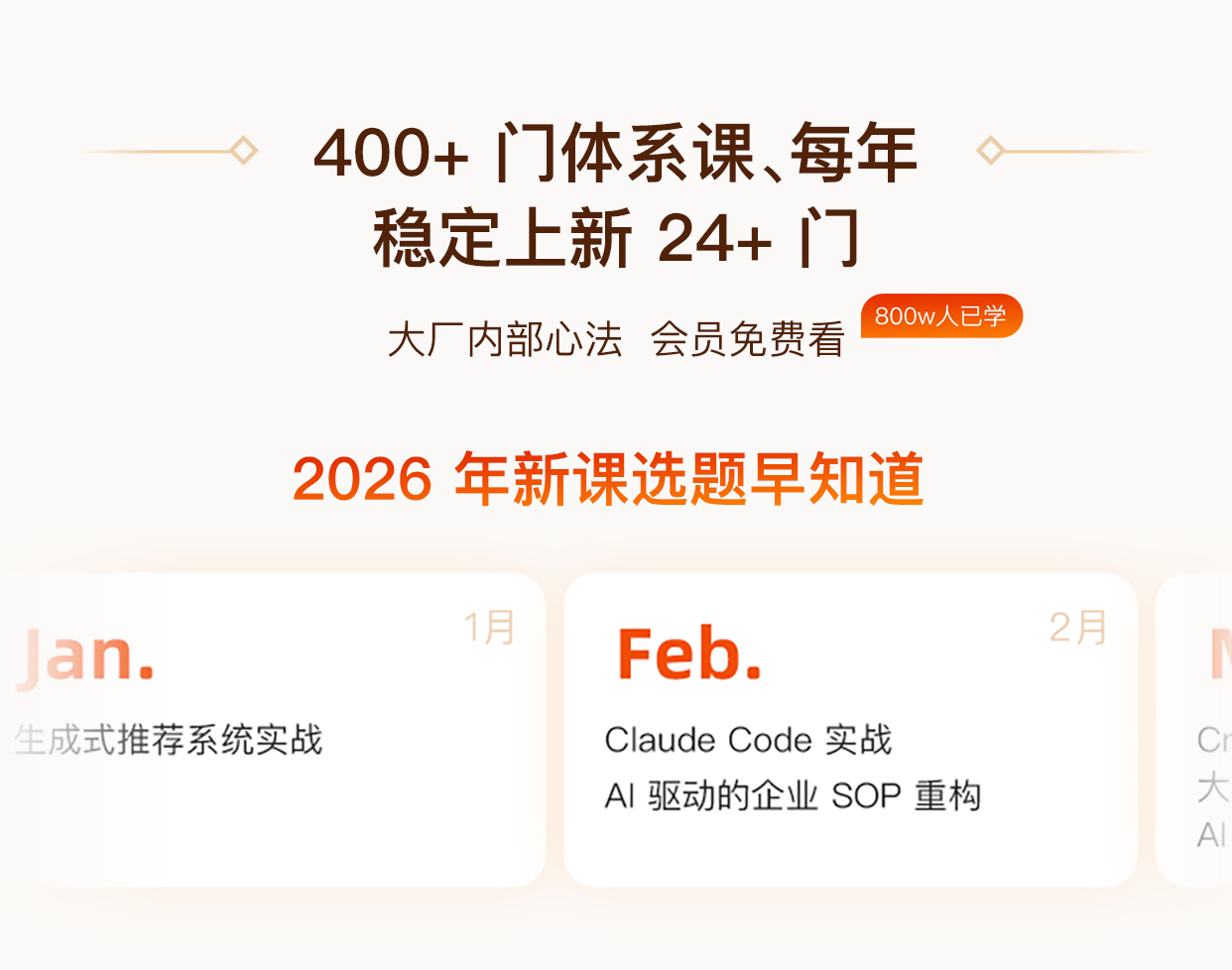 本站非极客时间官网,与官方无任何关系。我们不提供课程下载或详细内容,仅作为课程分享和推荐平台。我们鼓励大家支持正版,尊重创作者的劳动成果,这样不仅能帮助创作者持续产出优质内容,也能让自己获得更好的学习体验。请通过官方渠道购买和学习课程,感谢您的理解与支持。