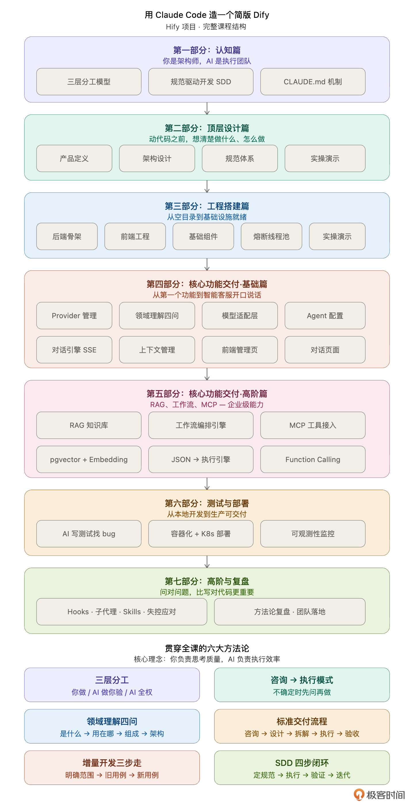 但 Hify 只是载体。这门课真正教的是一套完整的方法论——Claude Code 全链路开发框架。